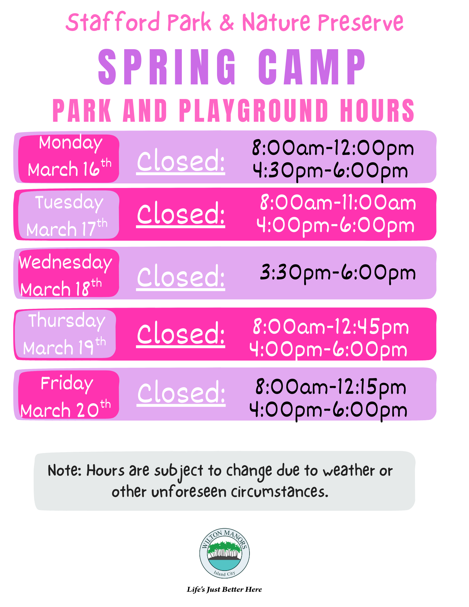 2026 Spring Camp Park & Playground Hours